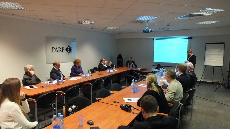 W dniu 14.11.2013 r. w siedzibie PARP przy ul. Pańskiej w Warszawie Dariusz Ciarkowski – członek zarządu MAE – przedstawił genezę powstania i rozwoju klastra. Zaproszeni do udziału członkowie klastra: Piotr Baraniak – prezes firmy ELTRIX oraz Elżbieta Pełka – prezes firmy EPCreatives opowiedzieli o swoich doświadczeniach, korzyściach i celach współpracy w ramach klastra. Wszystkim wystąpieniom towarzyszyła sesja pytań i odpowiedzi oraz dyskusja. Koordynator Klastra Dariusz Ciarkowski i obecni członkowie Klastra wyczerpująco przedstawili doświadczenia związane z funkcjonowaniem Mazowieckiego Klastra Efektywności Energetycznej i Odnawialnych Źródeł Energii.