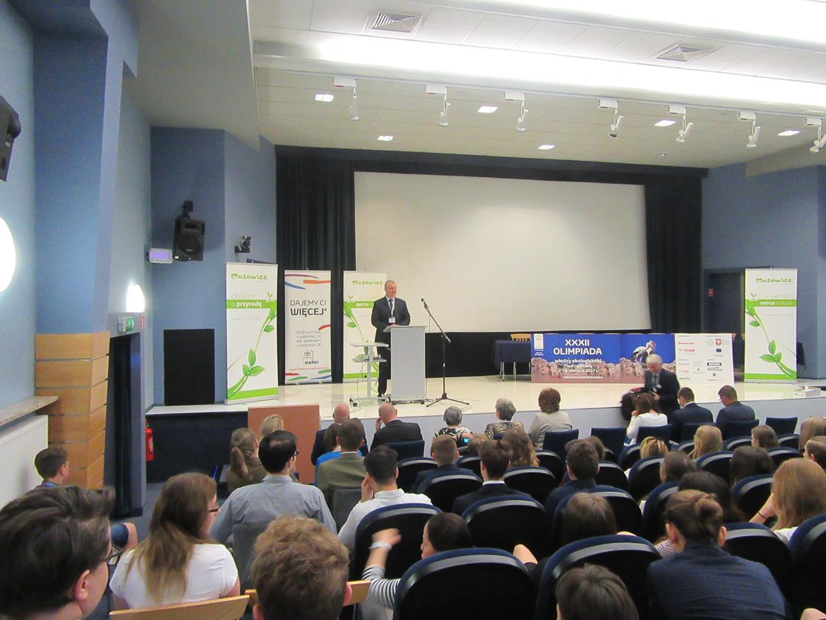 Zgromadzonych gości powitał Dyrektor Departamentu Gospodarki Odpadami oraz Pozwoleń Zintegrowanych i Wodnoprawnych Urzędu Marszałkowskiego Województwa Mazowieckiego w Warszawie – Pan Marcin Podgórski. Podkreślił on jak ogromna rolę odgrywa edukacja ekologiczna wśród dzieci i młodzieży, która to jest przyszłością naszego kraju. Stwierdził, że wszyscy finaliści etapu krajowego stanowią godną naśladowania elitę.